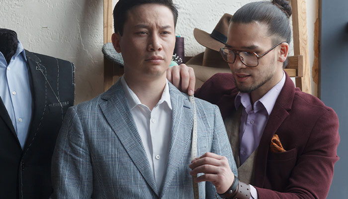 熟練のテーラーが正確な採寸を行い、最適なフィット感を実現します。